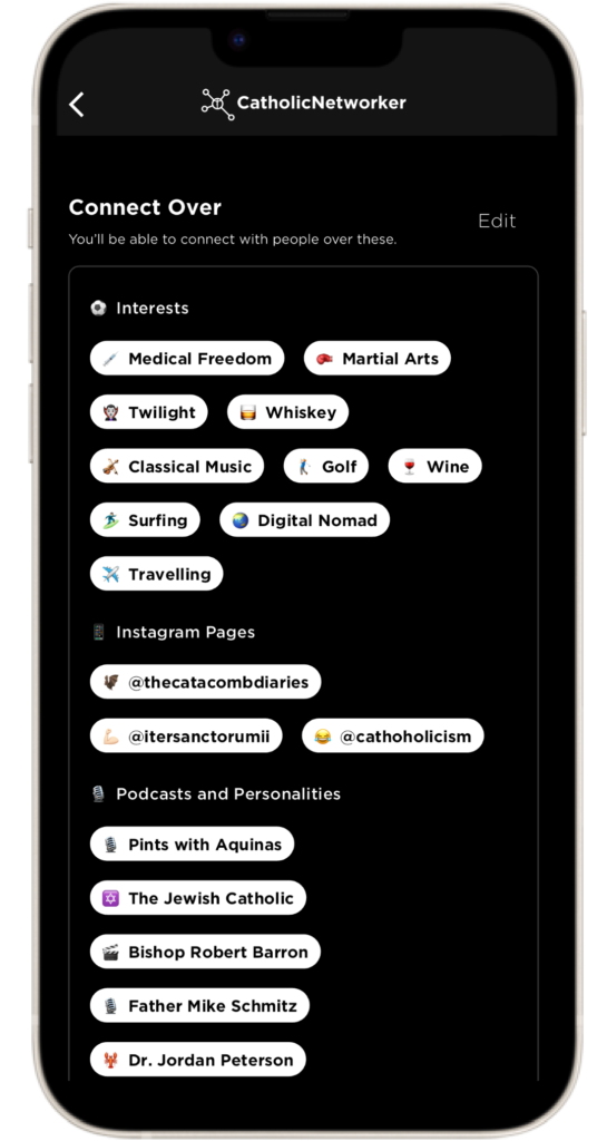 Connect over similar interests and Catholic Personalities