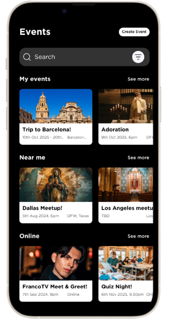 Connect with like-minded Catholics based on interests, hobbies, favourite online personalities, and more. Share what upcoming events you’re attending, or where you’ll be travelling to. Network with other professionals in your industry.